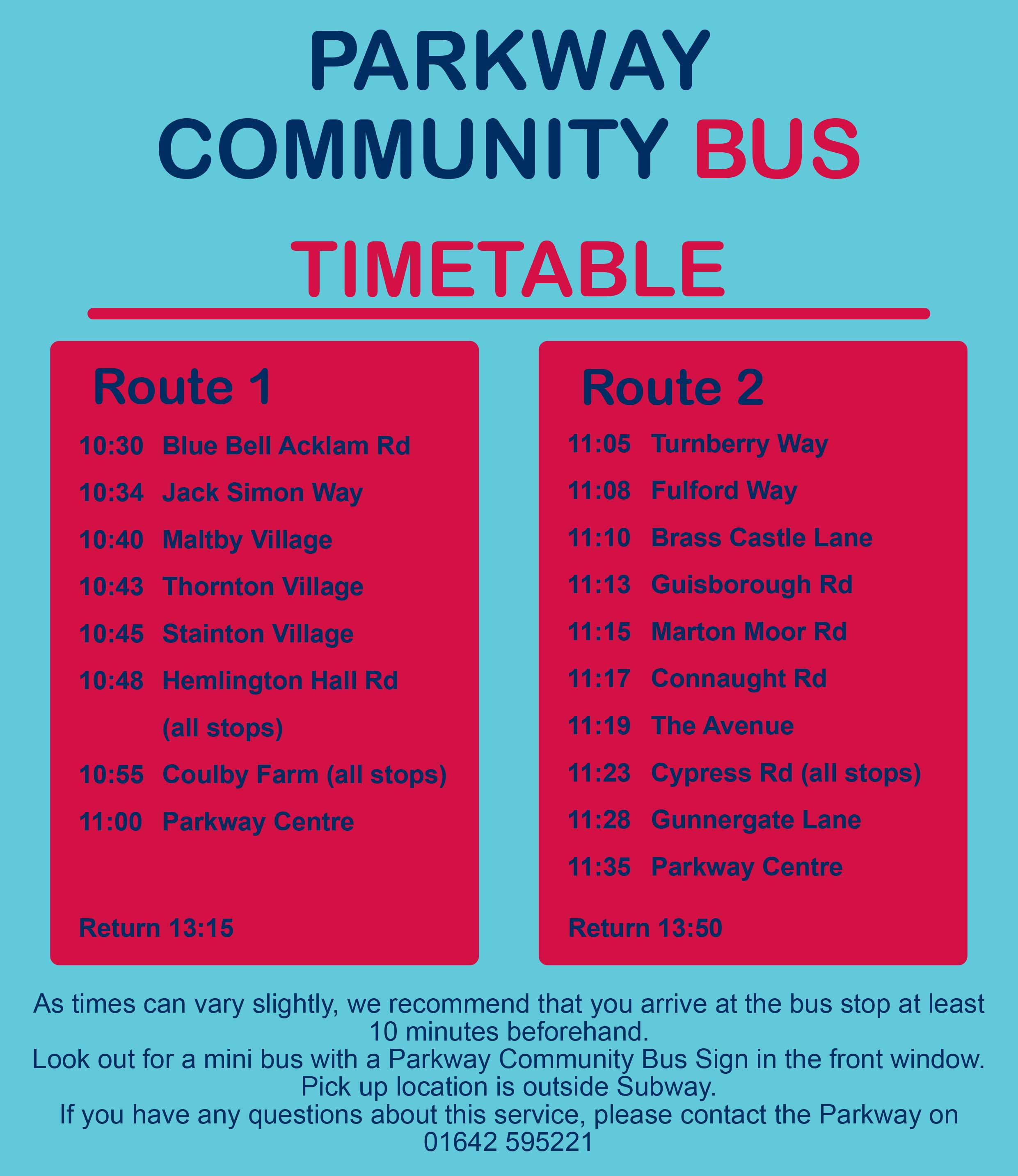 The Parkway Shopping Centre offers a community bus which timetable can be view by clicking here